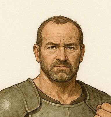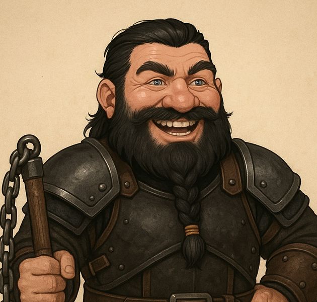 Sergeant Major McCreadie is a grizzled warrior and a hardened veteran. He speaks sharply and tends to be the disciplinarian on behalf of his captain (who tends not to raise his voice ever, in sharp contrast to Sergeant Major McCreadie). He wields a large warhammer which he keeps leaning against the table at which he sits. Tom uses the tough stat block, or alternatively a homebrew monster has been created for him in DnD Beyond, available here.