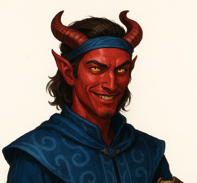 Ebkas is the leader of the company of the gilded banner. He is an Infernal Tiefling, and a wizard. A homebrew monster has been created for him in DnD Beyond, available here.