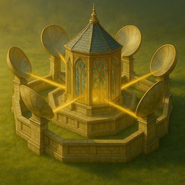 Captain De'Lion stands and walks out of the mess hall, with Sergeant Major McCreadie and his arcanist, Horatio Verres in tow. He turns North and moves towards the large statue that you saw on your way in to the fort. Inside the walls of the fort, just to the rear of the feet of the statue, you see a large glass building with an array of conical mirrors about a central chamber. You see a small group of soldiers collecting a large gem, just barely smaller than a man's head, from the chamber, and walk it towards the statue.