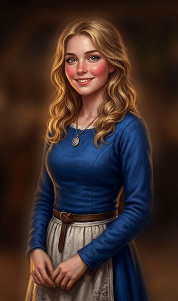 From deeper in the house, you hear another voice, one clearly belonging to a young woman, “Barnacle, give him a moment, will you?” A young woman steps into the entryway from what appears to be the kitchen; she has wavy blonde hair that hangs around her shoulders, though with an obvious ‘kink’ that reveals it had been tied up for most of the day. She has bright green eyes that radiate an air of kindness, and flushed cheeks, “oh, we have guests”, she says, “what a welcome surprise. I’ve started preparing dinner, but it won’t be any trouble at all to make some more.”